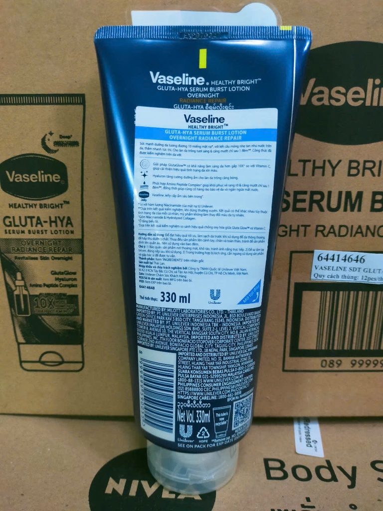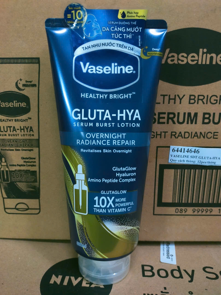Sữa Dưỡng Thể Trắng Da Ban Đêm Vaseline Healthy Bright Gluta-Hya Serum Burst Lotion 10x 330ml X 12 Tuýp